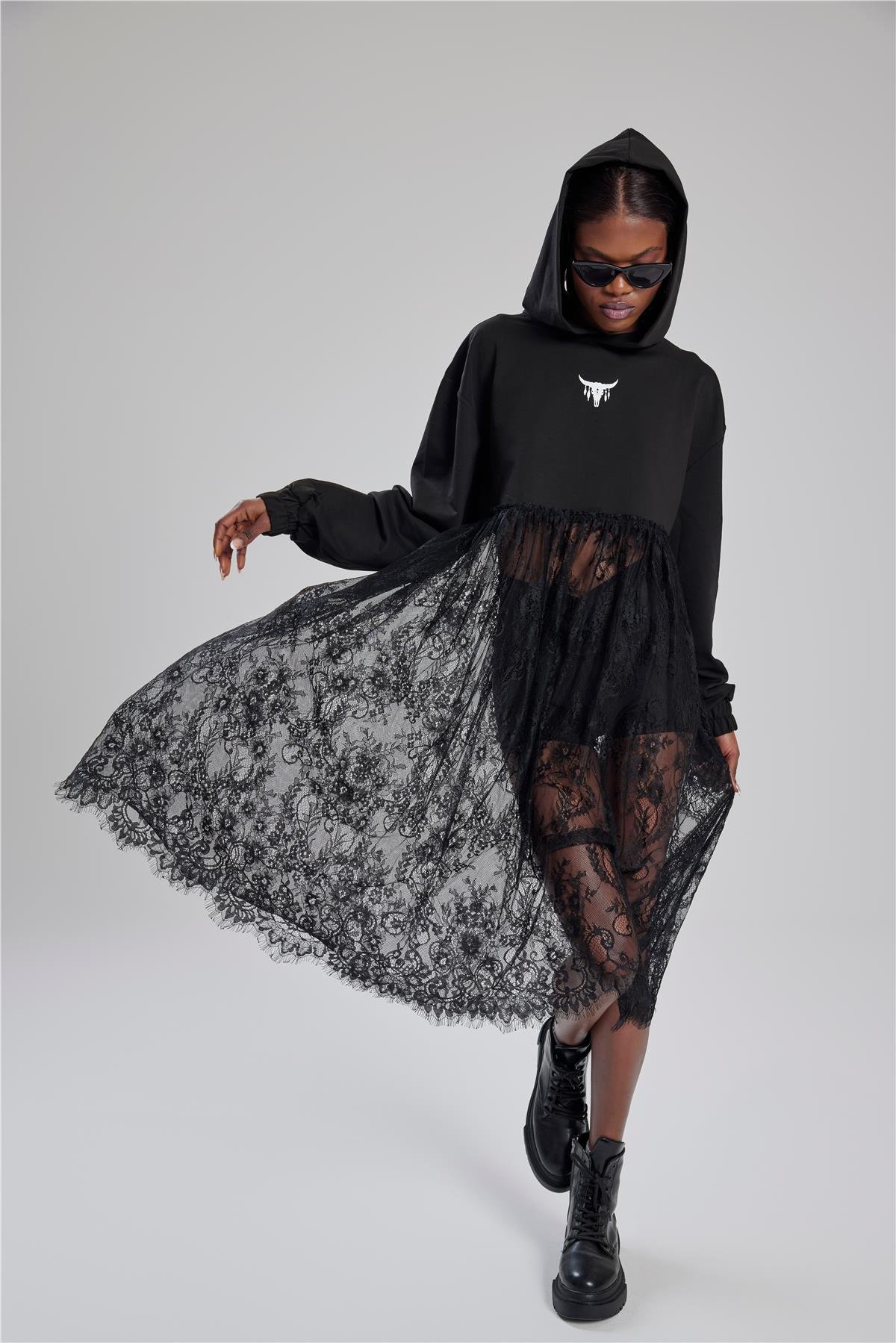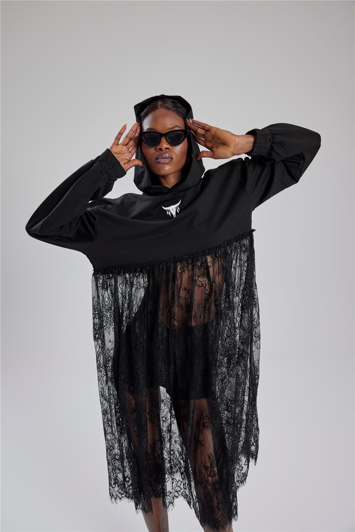 Alejandro Siyah Dantel Sweatshirt (ALJ_24)