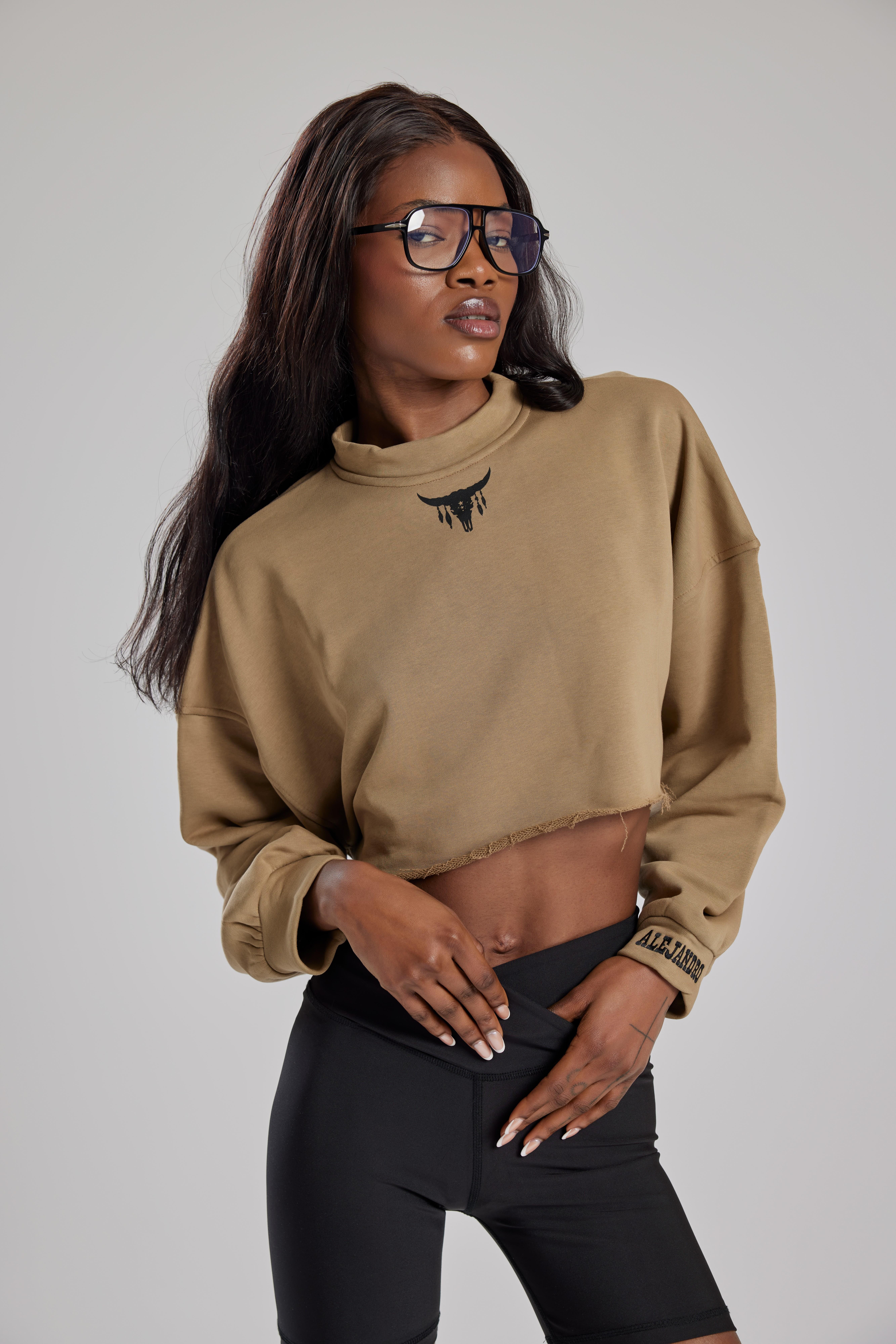 Alejandro Sütlü Kahve Crop Sweatshirt (ALJ_20)