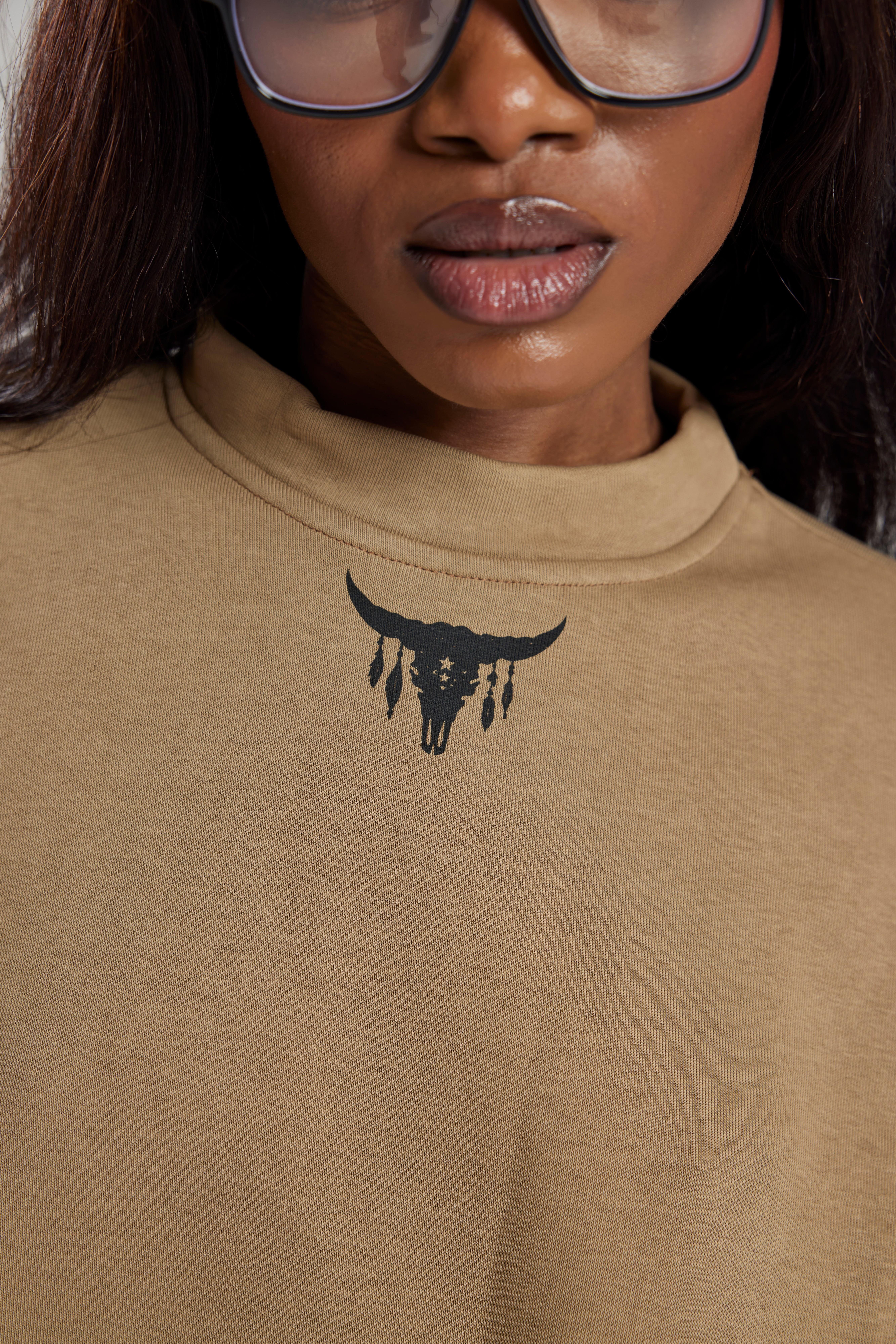 Alejandro Sütlü Kahve Crop Sweatshirt
